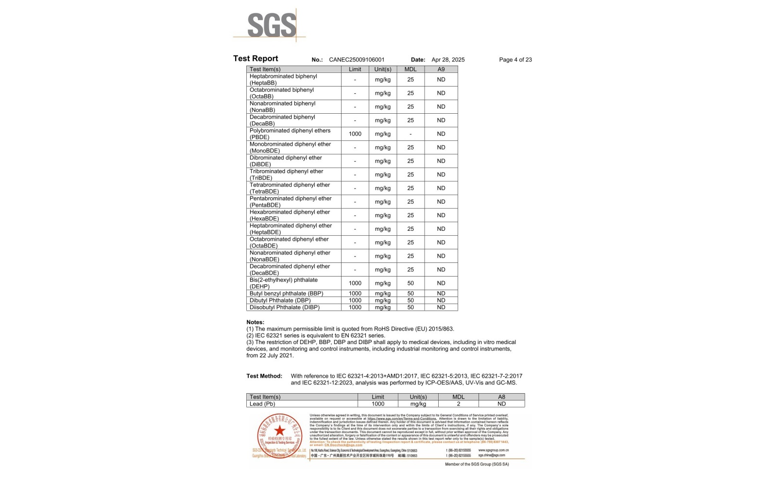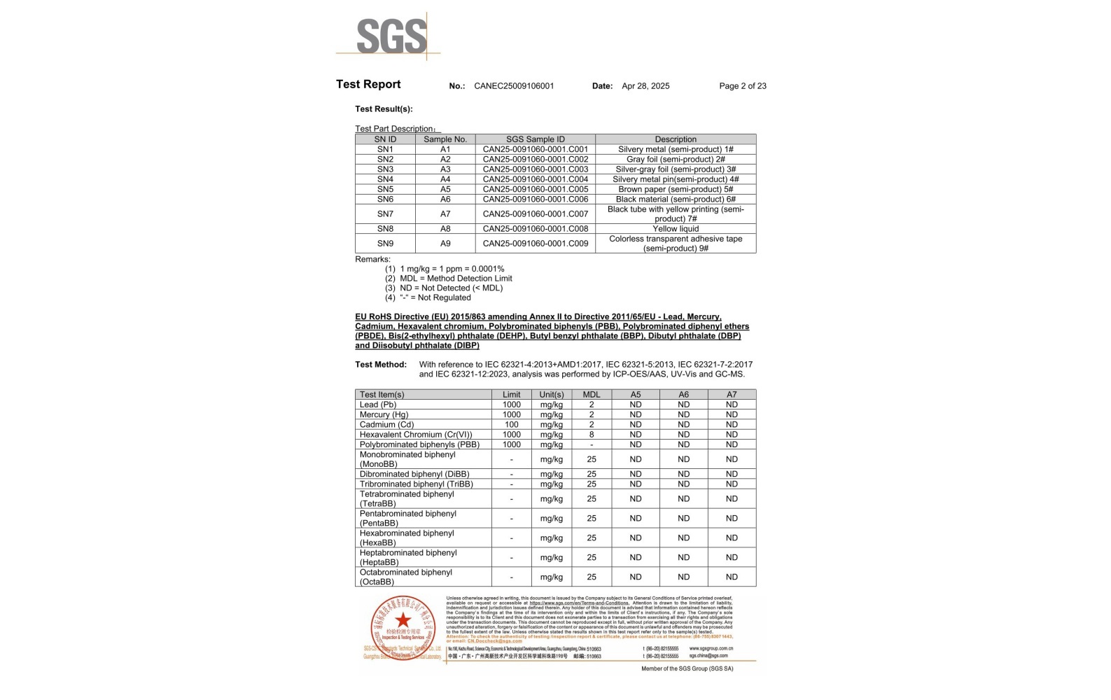 環(huán)保測試報告 ROHS+鹵素 CANEC25009106001