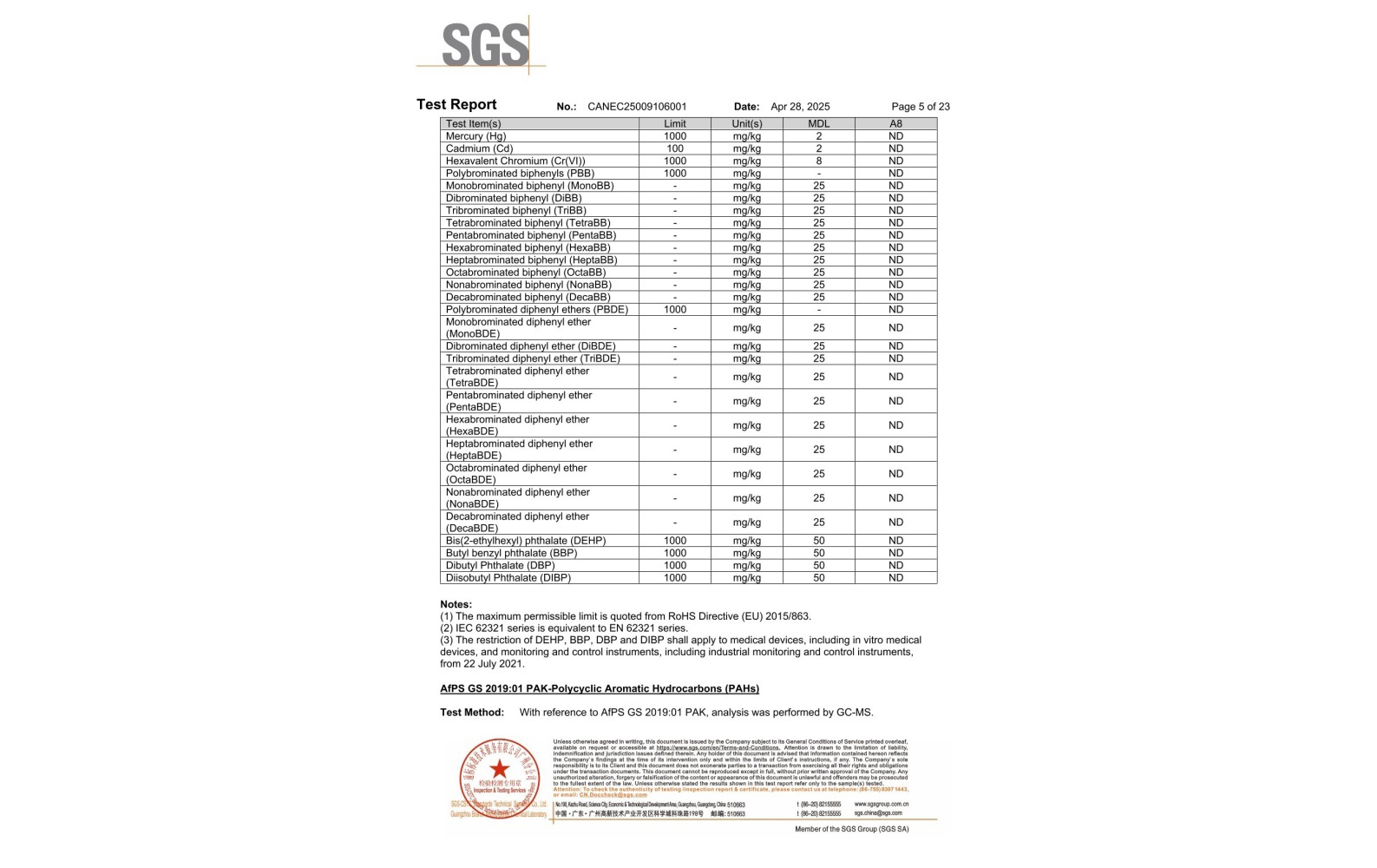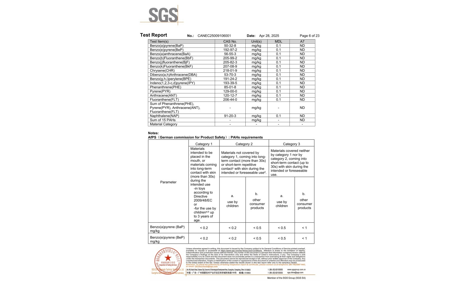 環(huán)保測試報告 PFAS CANEC25009106007
